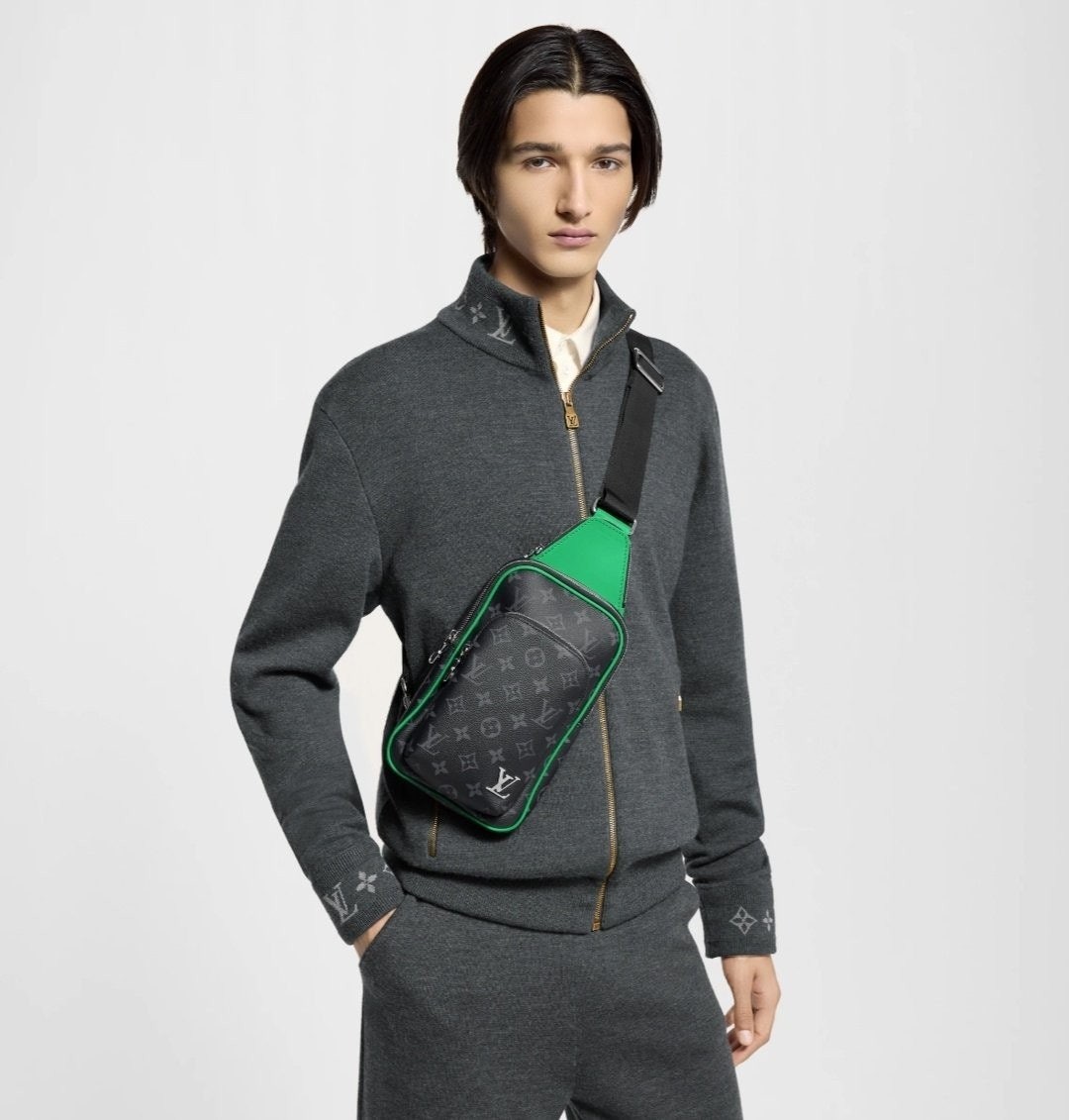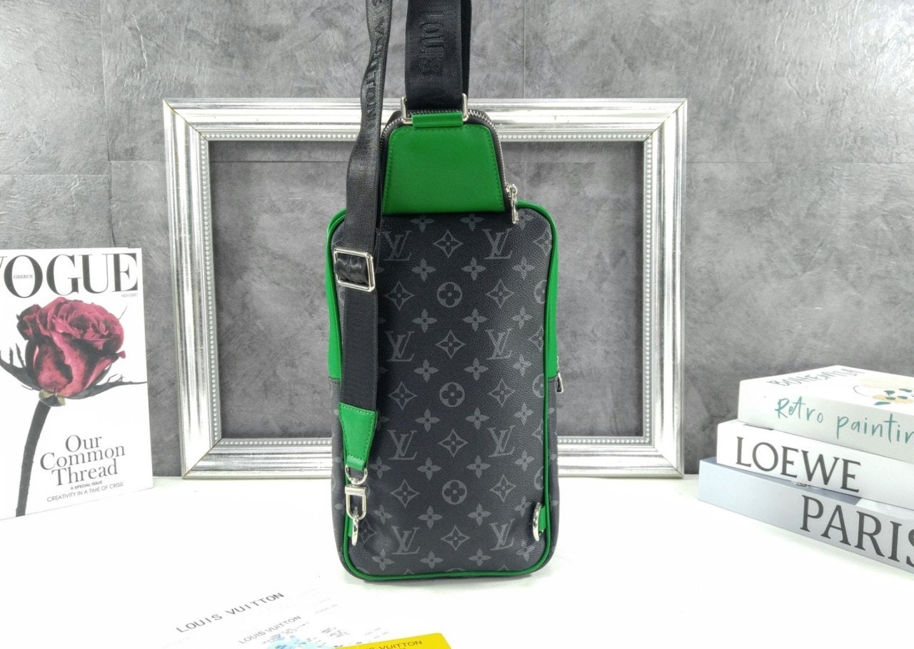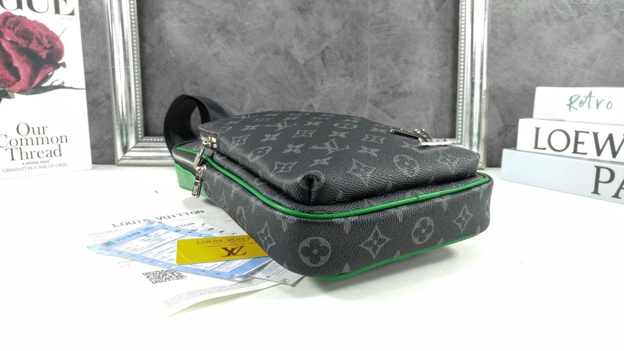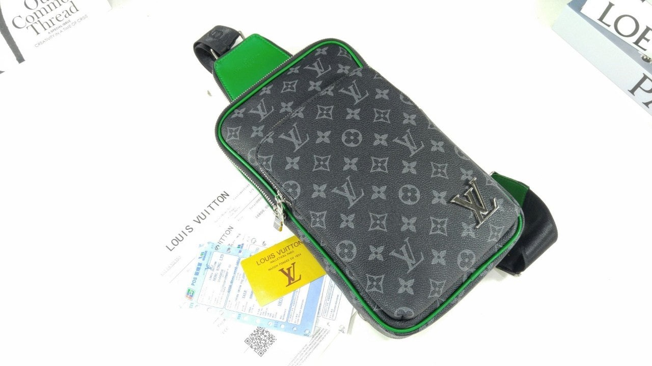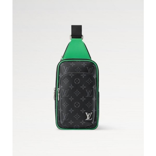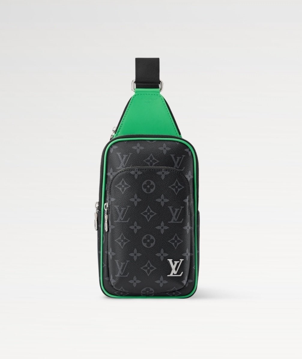 모노그램 이클립스 캔버스 소재의 에비뉴 슬링백 PM 크로스바디 백. 대담하고 산뜻한 감각을 더하는 색상을 입힌 가죽 트리밍과 파이핑 디테일. 루테늄 색조의 지퍼가 달린 세 개의 지퍼형 포켓과 주요 수납칸, 넓은 앞면 포켓, 작은 삼각 포켓을 갖춘 아이템.