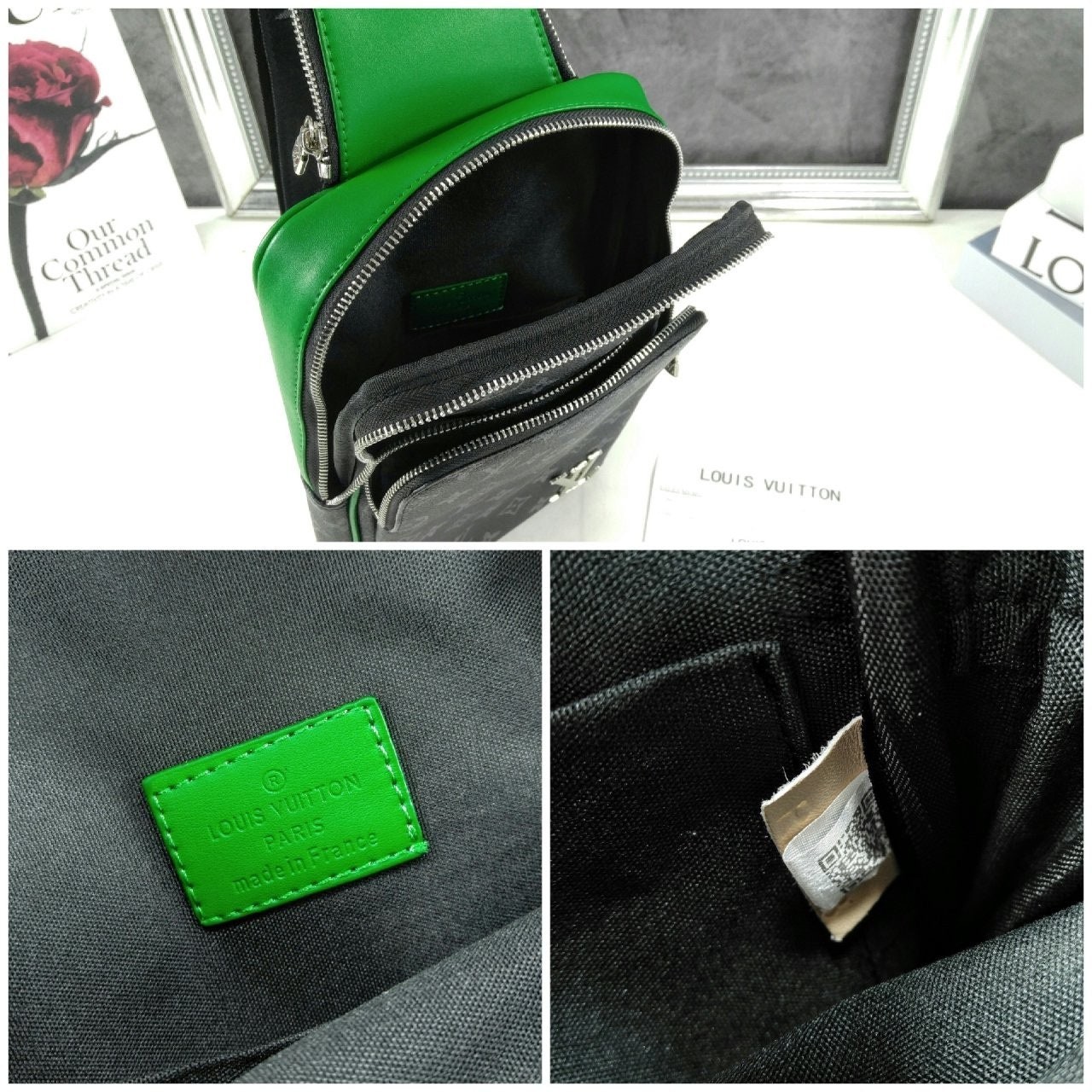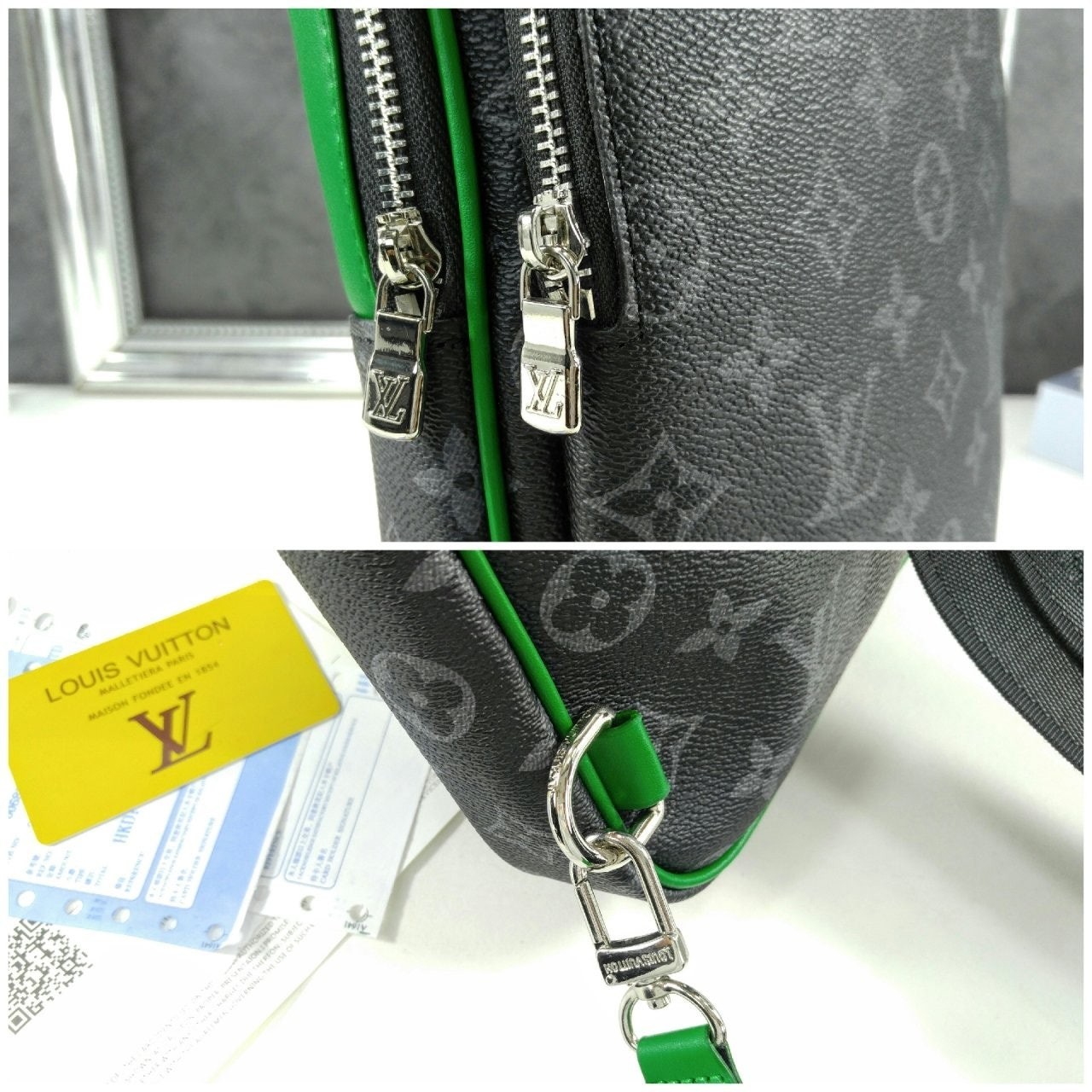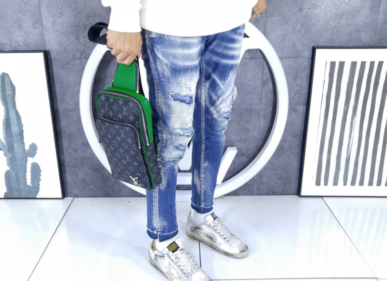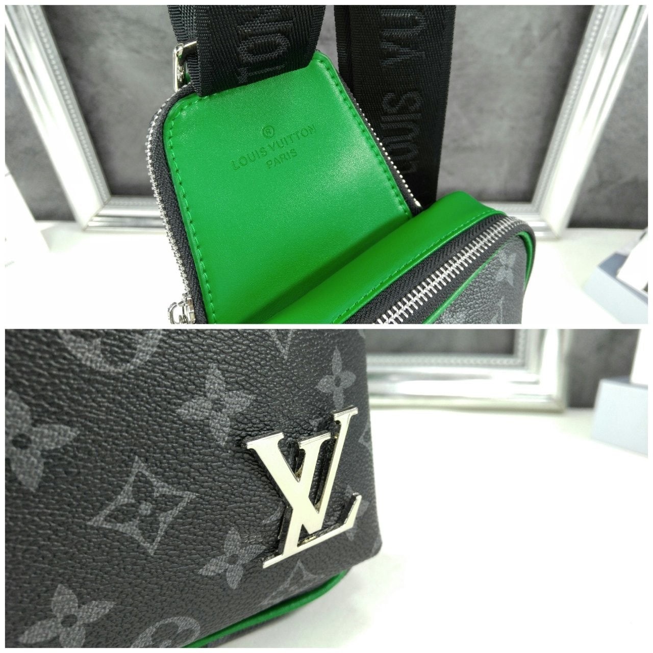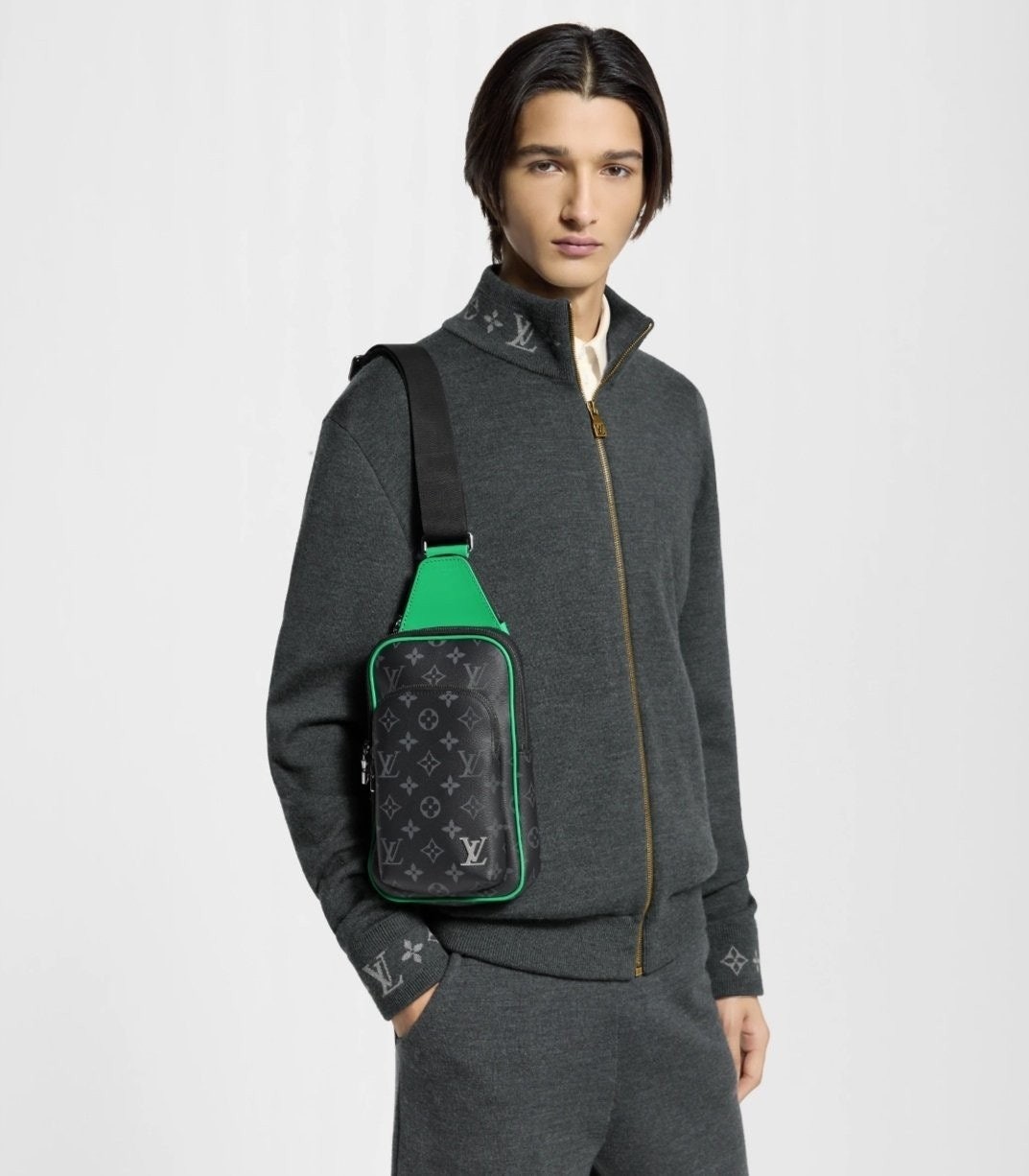 모노그램 이클립스 캔버스 소재의 에비뉴 슬링백 PM 크로스바디 백. 대담하고 산뜻한 감각을 더하는 색상을 입힌 가죽 트리밍과 파이핑 디테일. 루테늄 색조의 지퍼가 달린 세 개의 지퍼형 포켓과 주요 수납칸, 넓은 앞면 포켓, 작은 삼각 포켓을 갖춘 아이템.